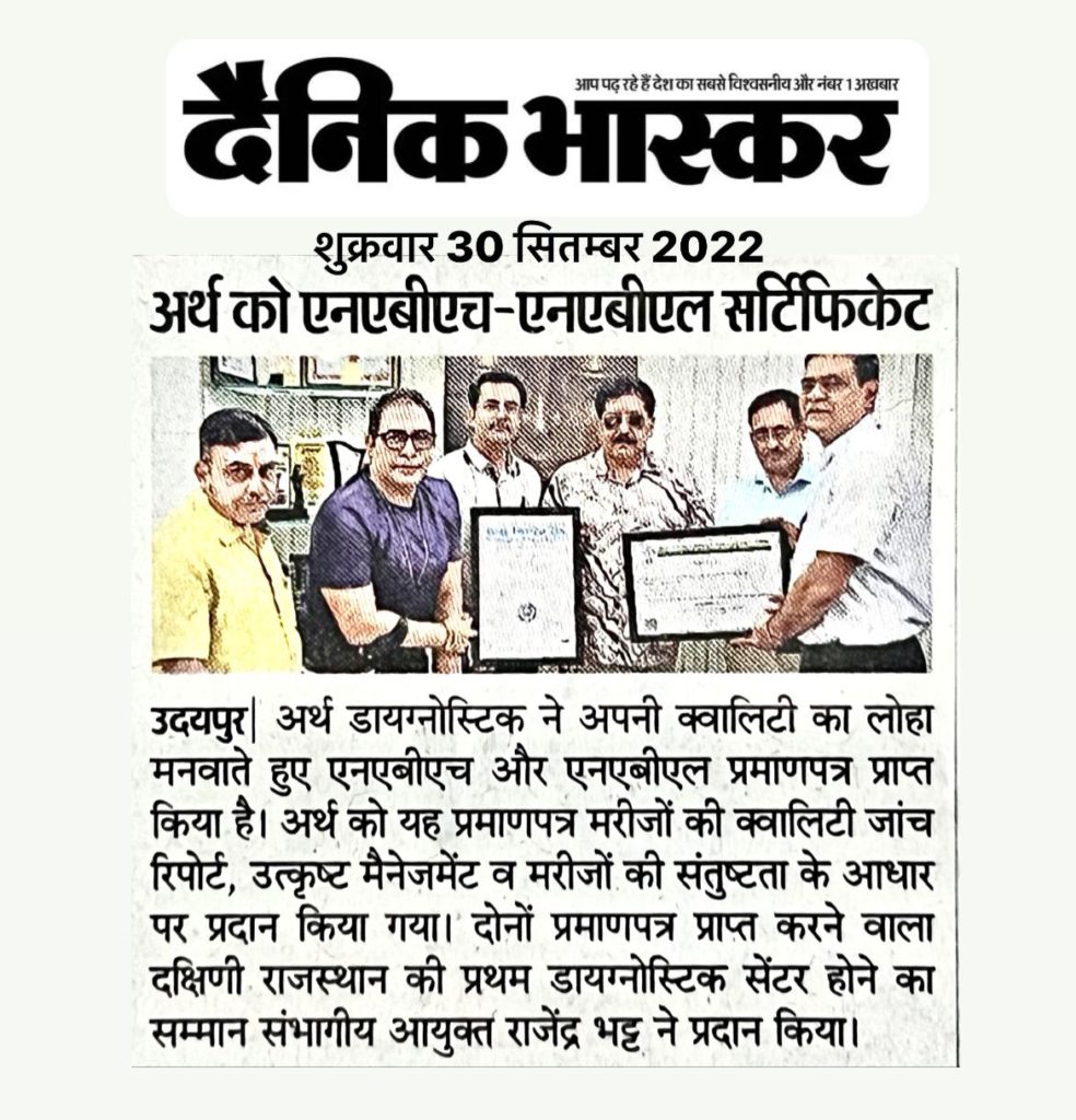 Arth becomes the First Diagnostic Center in Southern Rajasthan to get both NABL and NABH certificate.