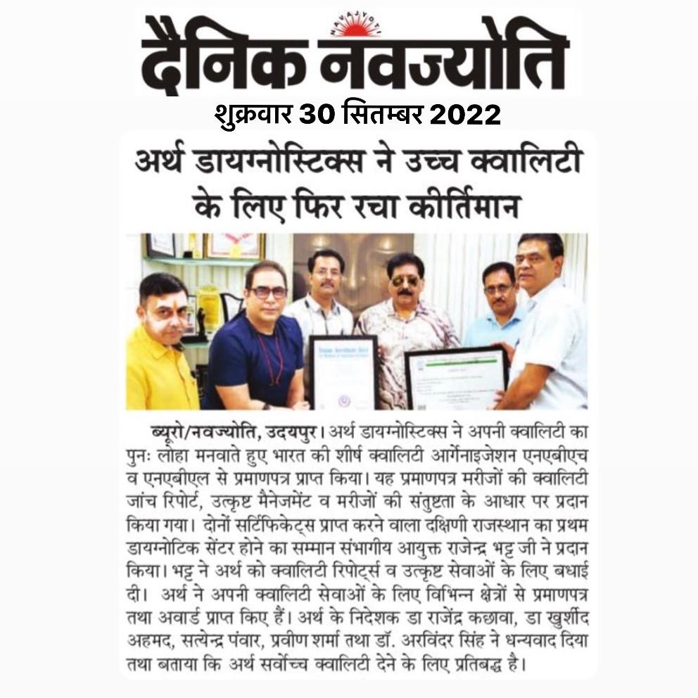 Divisional Commissioner Shri Rajendra Bhatt ji conferred the honor of being the first Diagnostic Center of Southern Rajasthan to get both the certificates.
