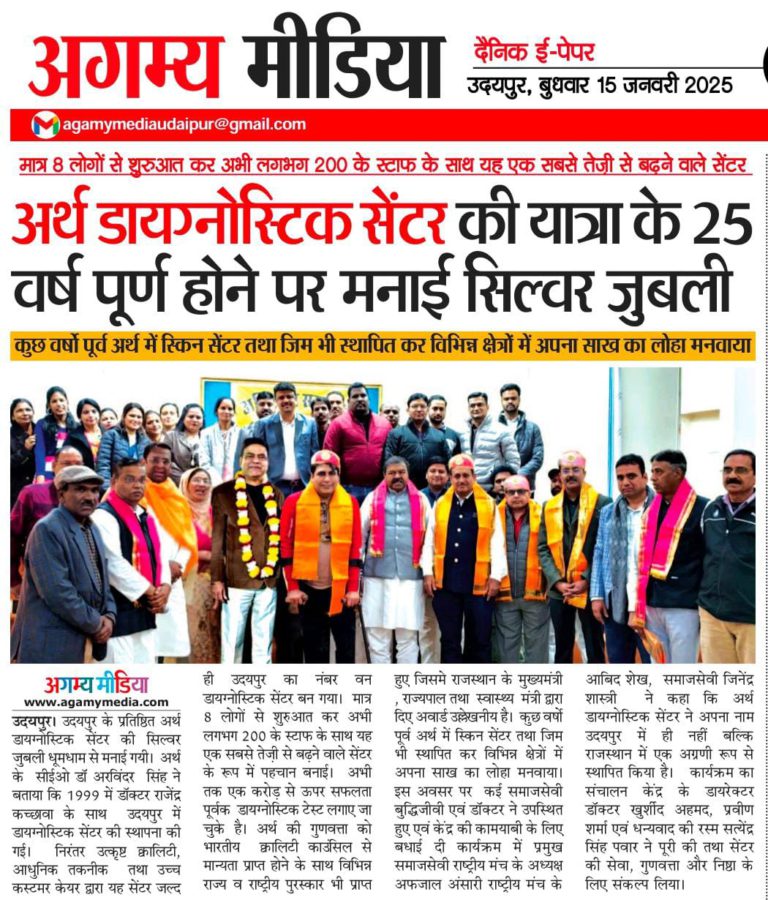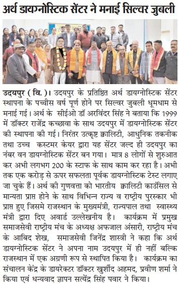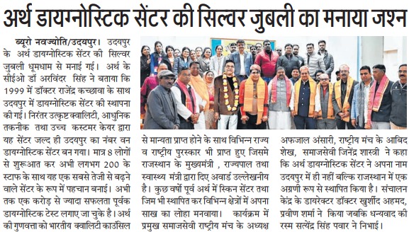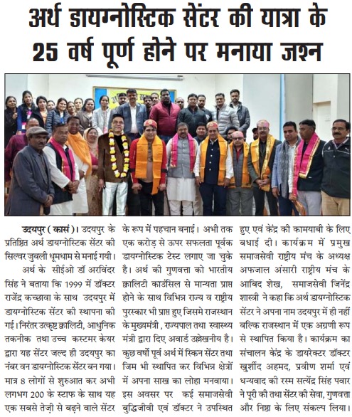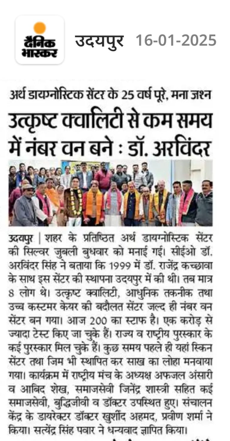 Established in 1999 with a team of just 8 people, Udaipur’s Arth Diagnostic Center has grown into one of the fastest-expanding healthcare institutions, now employing nearly wqstaff members. Arth recently celebrated its Silver Jubilee with immense pride and enthusiasm, completing 25 successful years of service.